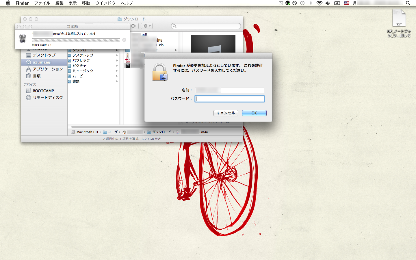 ユーザのユーザプロフィール: tanpopomax tanpopomax 作成者 ユーザレベル: レベル 1 10 ポイント 2016/03/10 17:03 NO9 への返信 MAC10.8でゴミ箱移動にパスワード入力画面が出ないようにするには?ターミナルを起動しての作業でパスワードの要請は消えました。情報、ありがとうございました。 返信 リンク