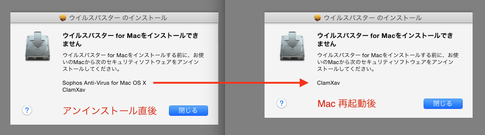Sophos Anti Virusを削除後、ウィルスバスターをMacにインストールしようとしたところ