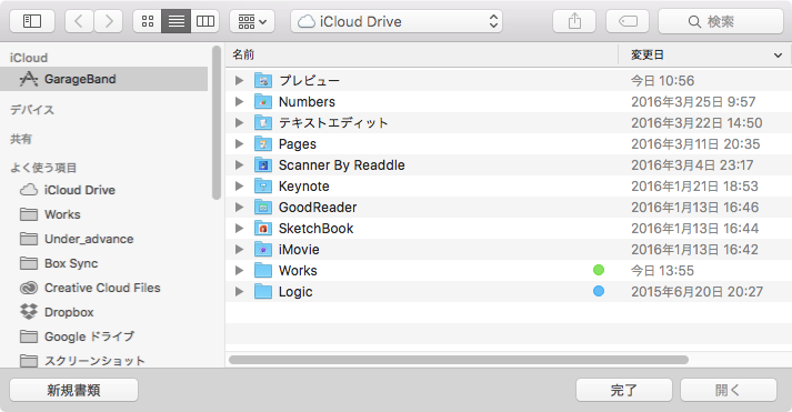 GarageBand 10.1.0でiCloud Driveに保存してあるはずの曲が開けないです。