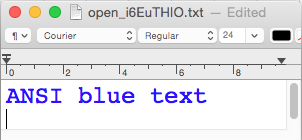 #printf '\033[34mANSI blue text\033[0m\n' | textedit2