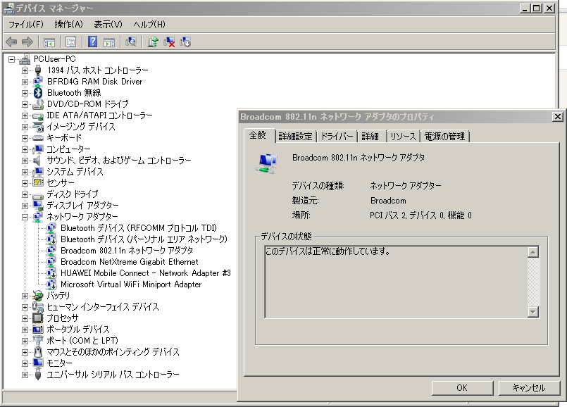 なお、有線でつなぐと、問題のwindows7を含めて全部つながります。