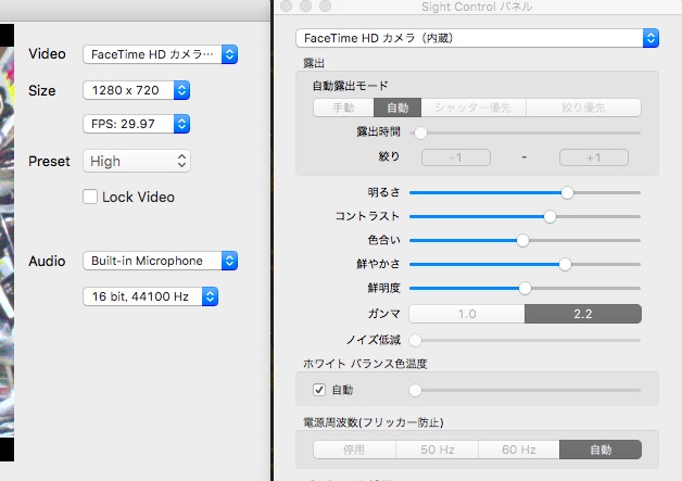 また、別のMac でよければ私のところで1 時間程度なら試せますが、ご提示の設定で良いでしょうか。その場合、撮影するのは通常の照明の点いた部屋と考えて良いですか。