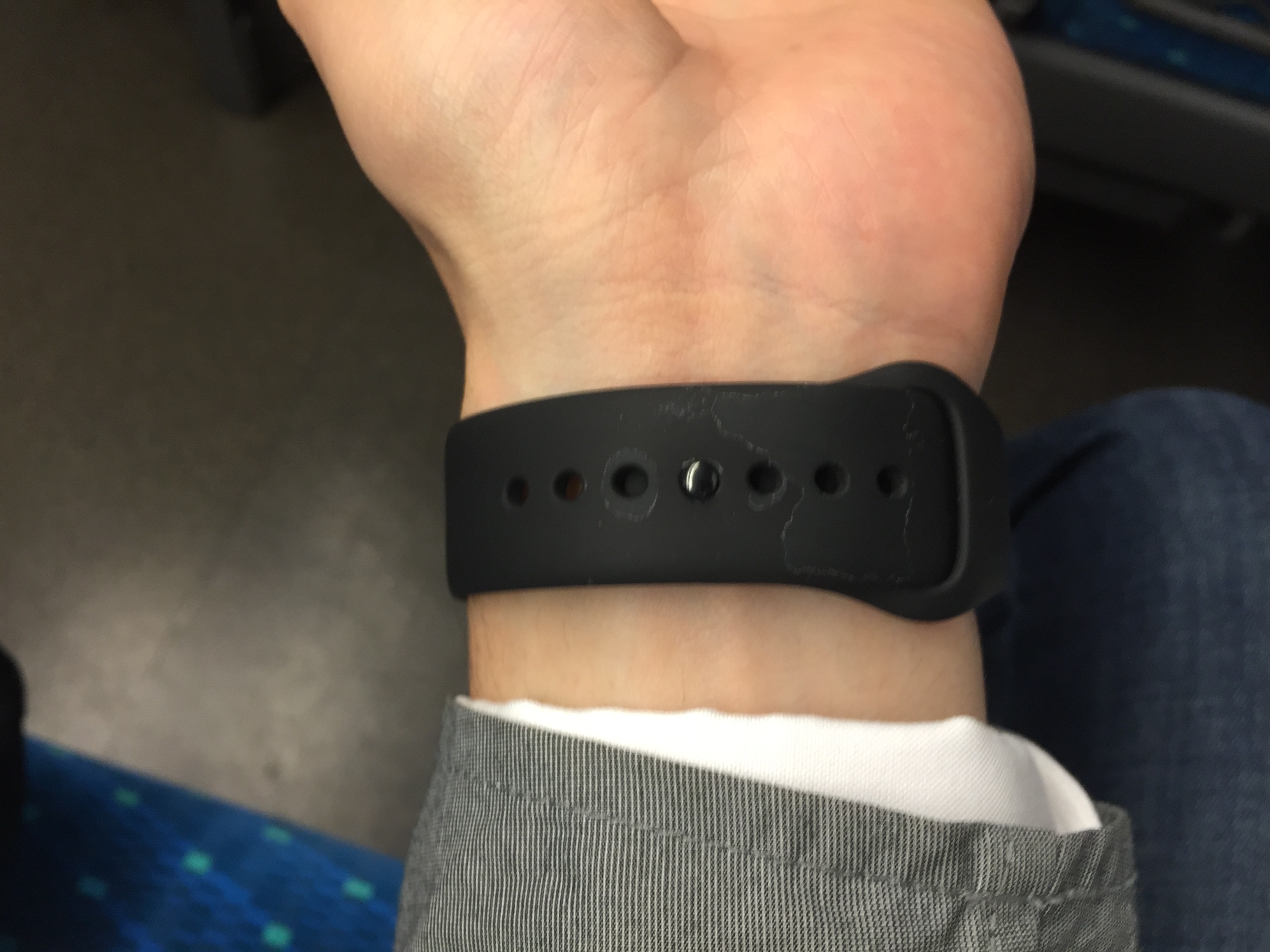 サポートに連絡したところ、仕様かどうかについて写真からでは判断はしかねるとのことでしたが、まず交換用のバンドを無償でいただけることになりました。それで再度同じ問題が起きた場合には連絡して欲しいとのことでした。