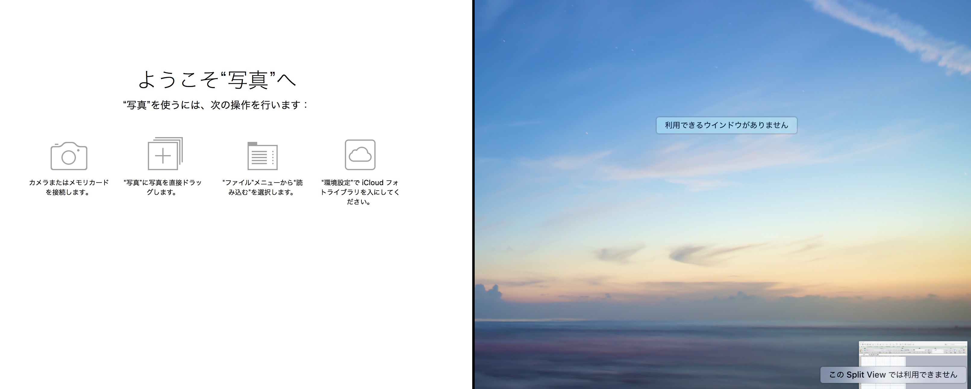 excelの上に「このSplit Viewでは利用できません」、画面全体に「利用できるウィンドウがありません」と表記が出ます。