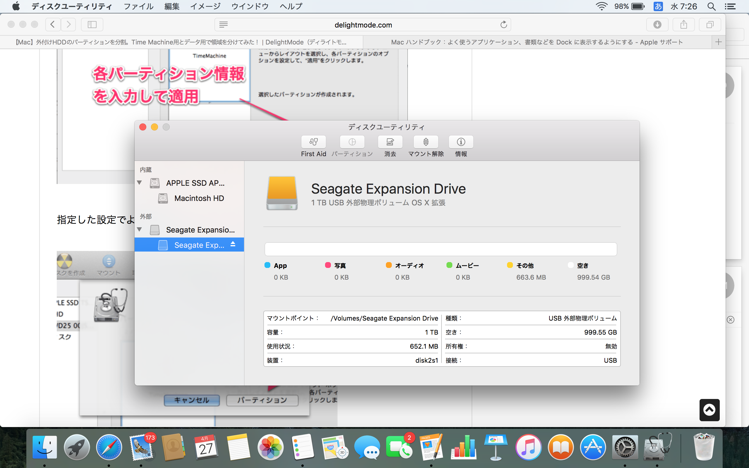 パーティションの作成はsegate と書いてある方を選択しないとできません。