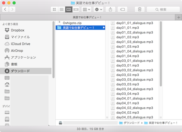 ちなみにEl Capitan 10.11.4 で「Oshigoto.zip (49.0MB)」をダウンロードし解凍してみましたが、こちらの環境でも普通に解凍できました。mp3の再生もできました。
