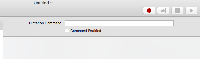 3)Automator.appの新規ワークフロー作成画面で、Dictation Commandを選択すると、添付して頂いた画像とは少し異なる編集画面になります。 OSの違いが原因かもしれないですが、Dictation Commandのワークフローの編集画面になっているかどうかを確認してみてください。