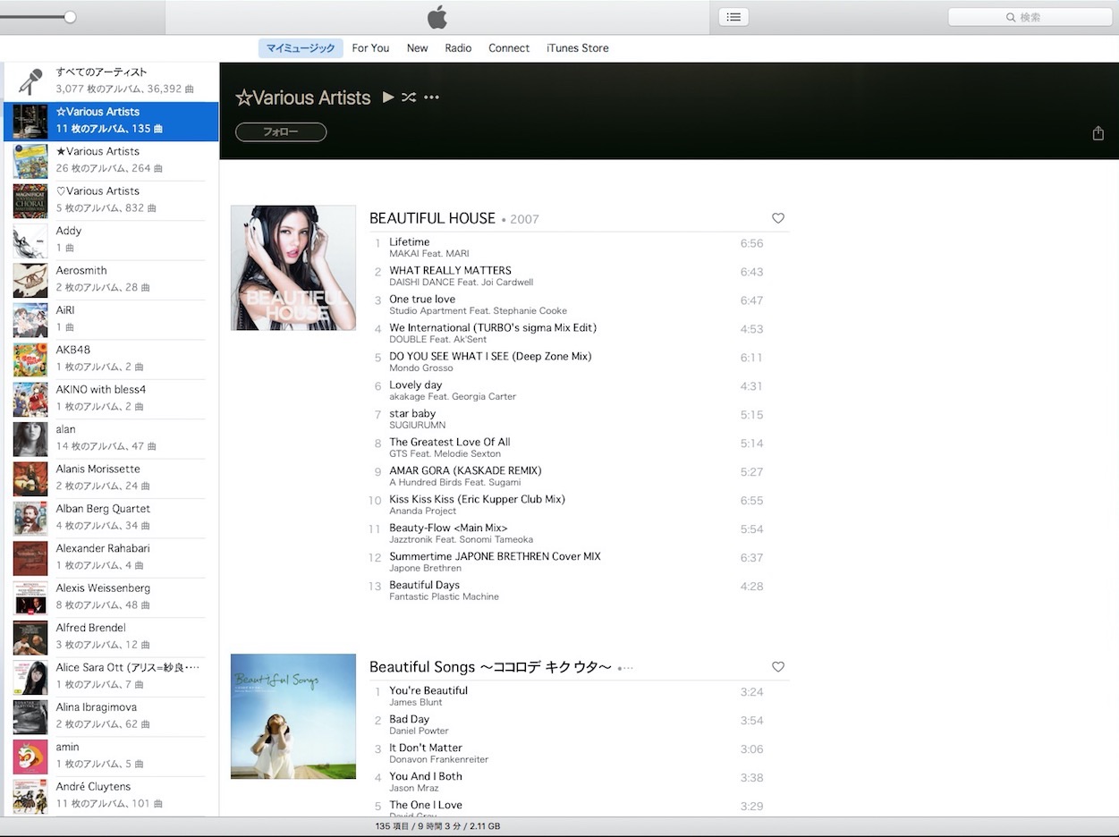 (1)コンピーレーションとなるアルバムで「☆Various Artists」というアルバムアーティスト名が「アルバム」一覧で、最初に表示されます。