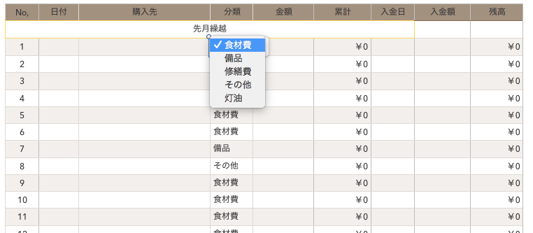 経費精算書で4つの項目に分類している項目の合計を出したいのですが、
