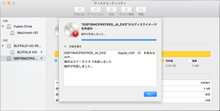 com.apple.diskutility エラー3の原因がわかりません。