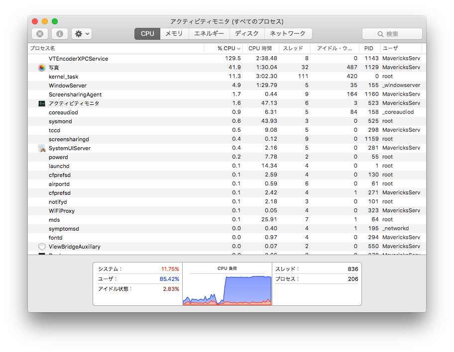 OS X 10.11.6にアップデートして書き出し時のログを比較してみました。