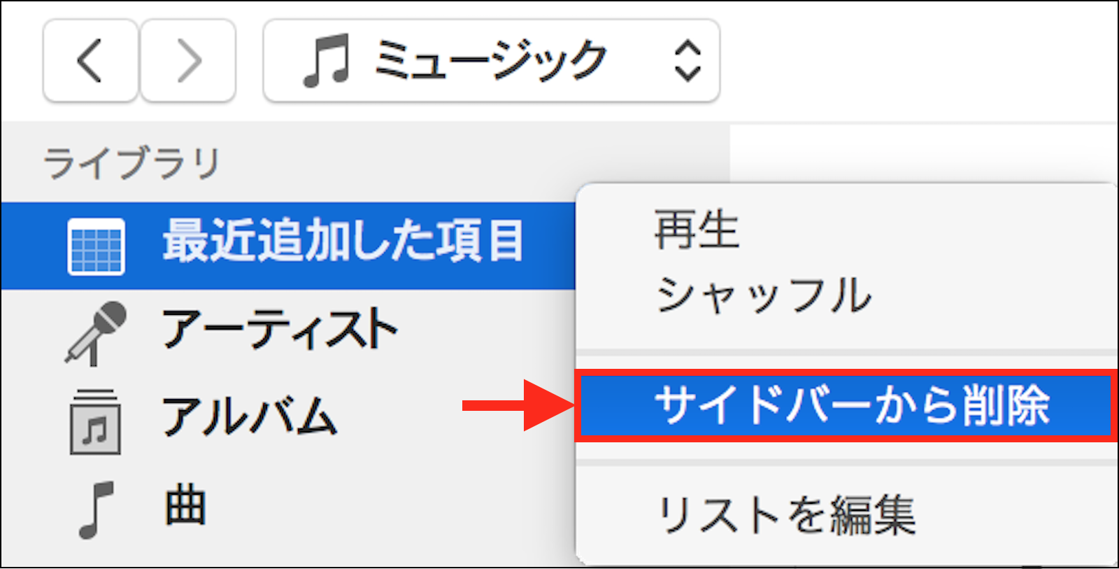 済みません、ライブラリではなくミュージックプレイリストのことを書きました。勘違いしました。