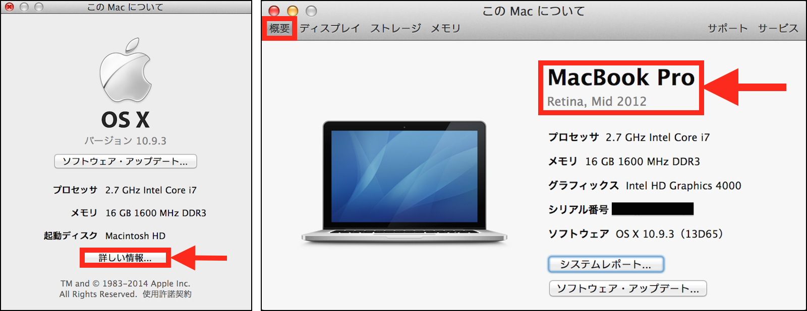 アップグレードする前の Mac OS X のバージョンは、Mac OS X Snow Leopard(10.6.8)〜 Mac OS X Lion(10.7.5)のはずですが、