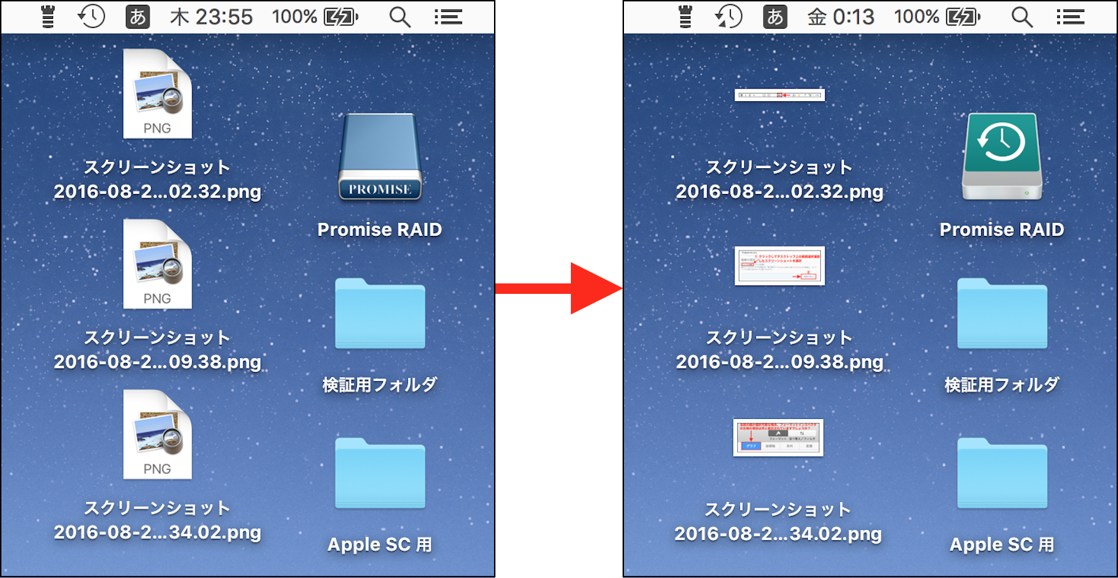 再起動>ログイン>デスクトップにあるPNGのアイコンが、PNGと書かれたアイコンが一瞬見えるけれども、