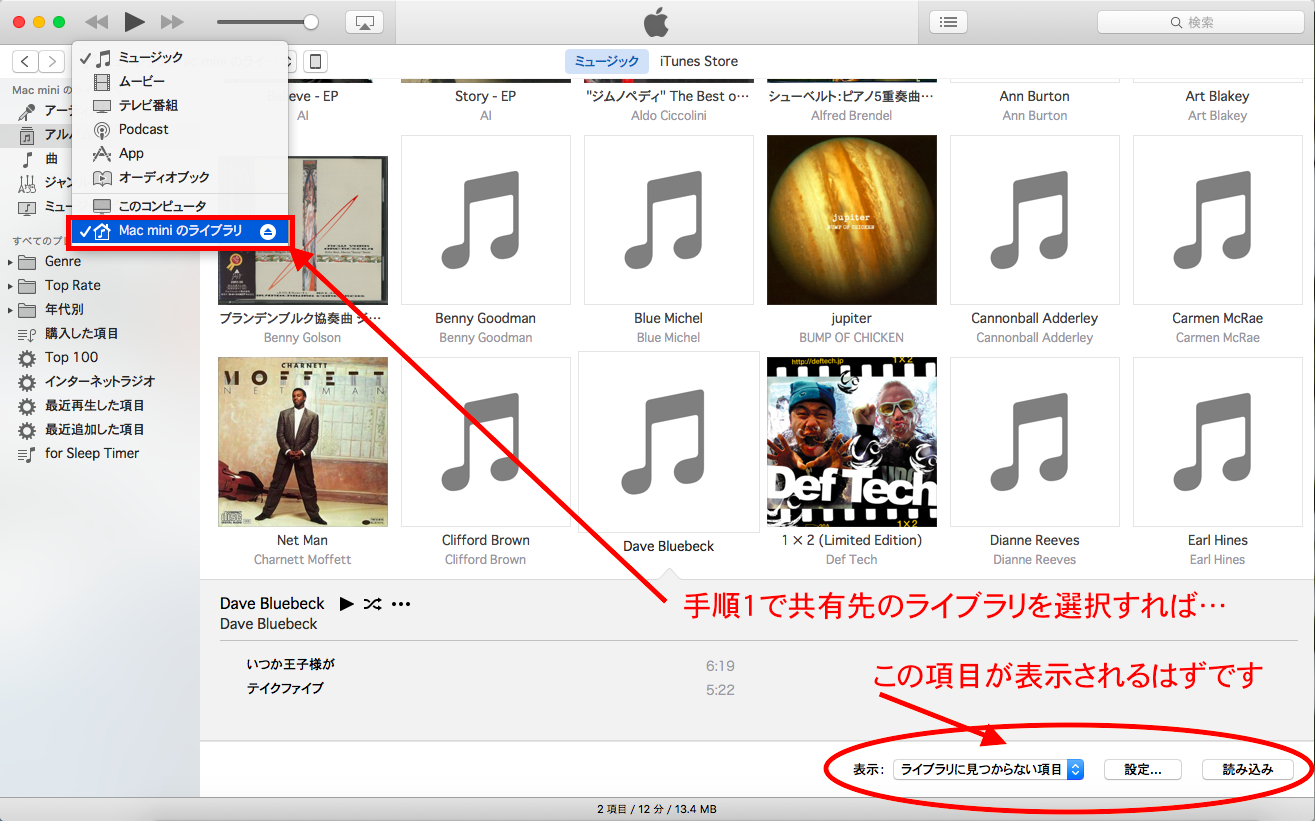 iTunesのホームシェアリングで共有者のライブラリから自分のライブラリにファイルをコピーする
