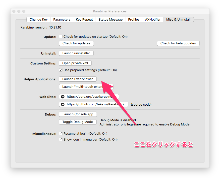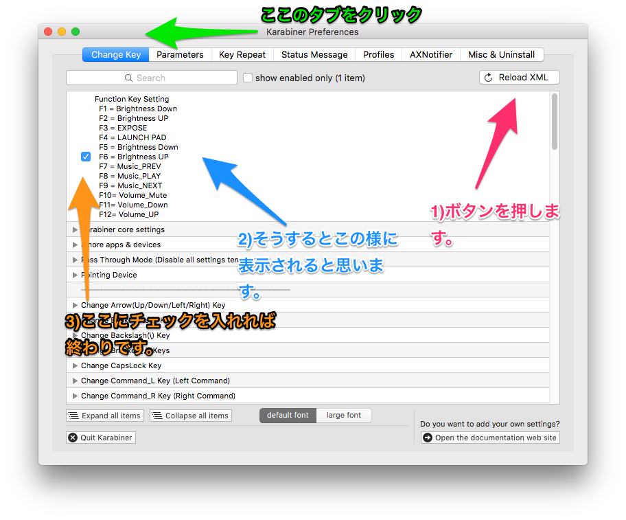 Karabinerのウインドウは消しちゃってもかまいません。