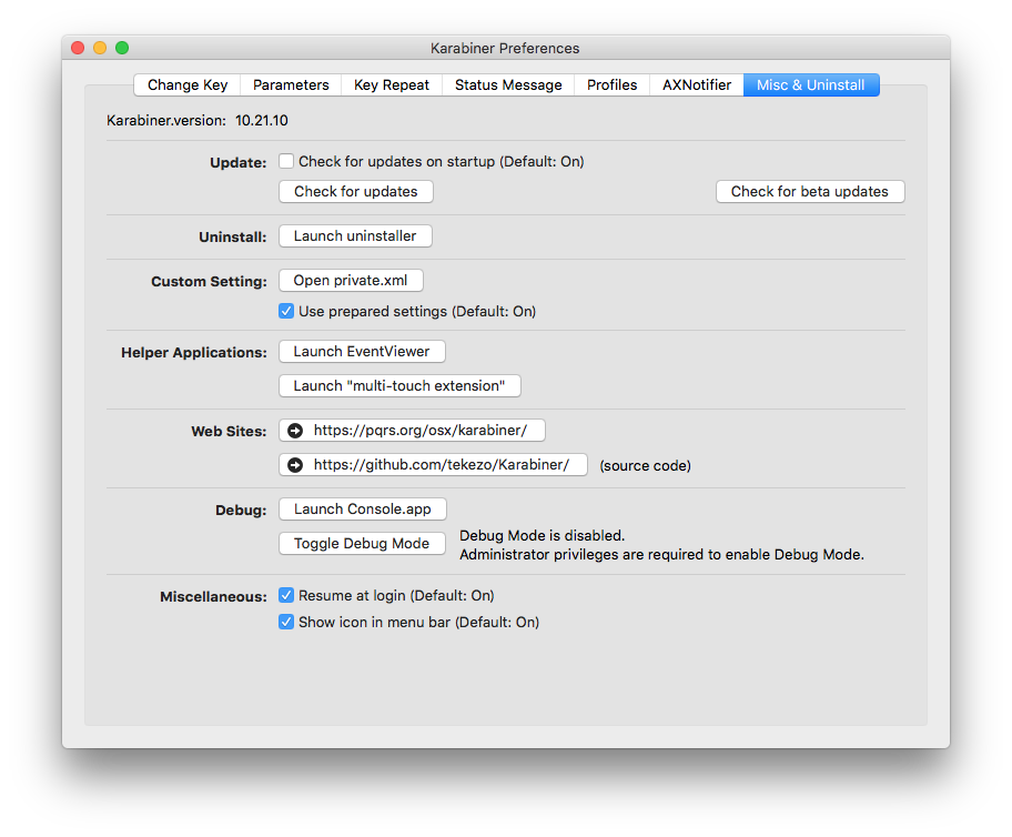 Preferencesを開いて、Misc & Uninstall のタブを選択します。