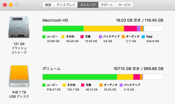 写真やビデオ、その他、大きなサイズのファイルや、iPhoneやiPadのバックアップはMacのHDではなく外付けのHDDに保存しているのですが、Macのストレージを見ると訳分からない増え方して困っています。