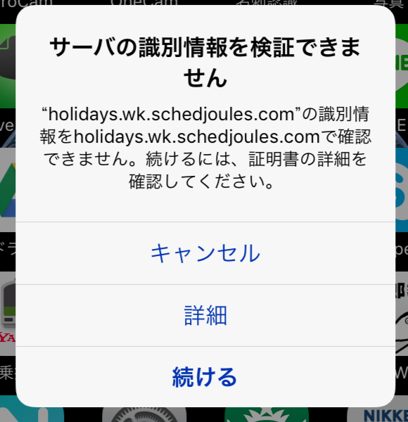 「サーバの識別情報を検証できません」とポップアップが何度もでます(発行元は“信頼できない”の表示)