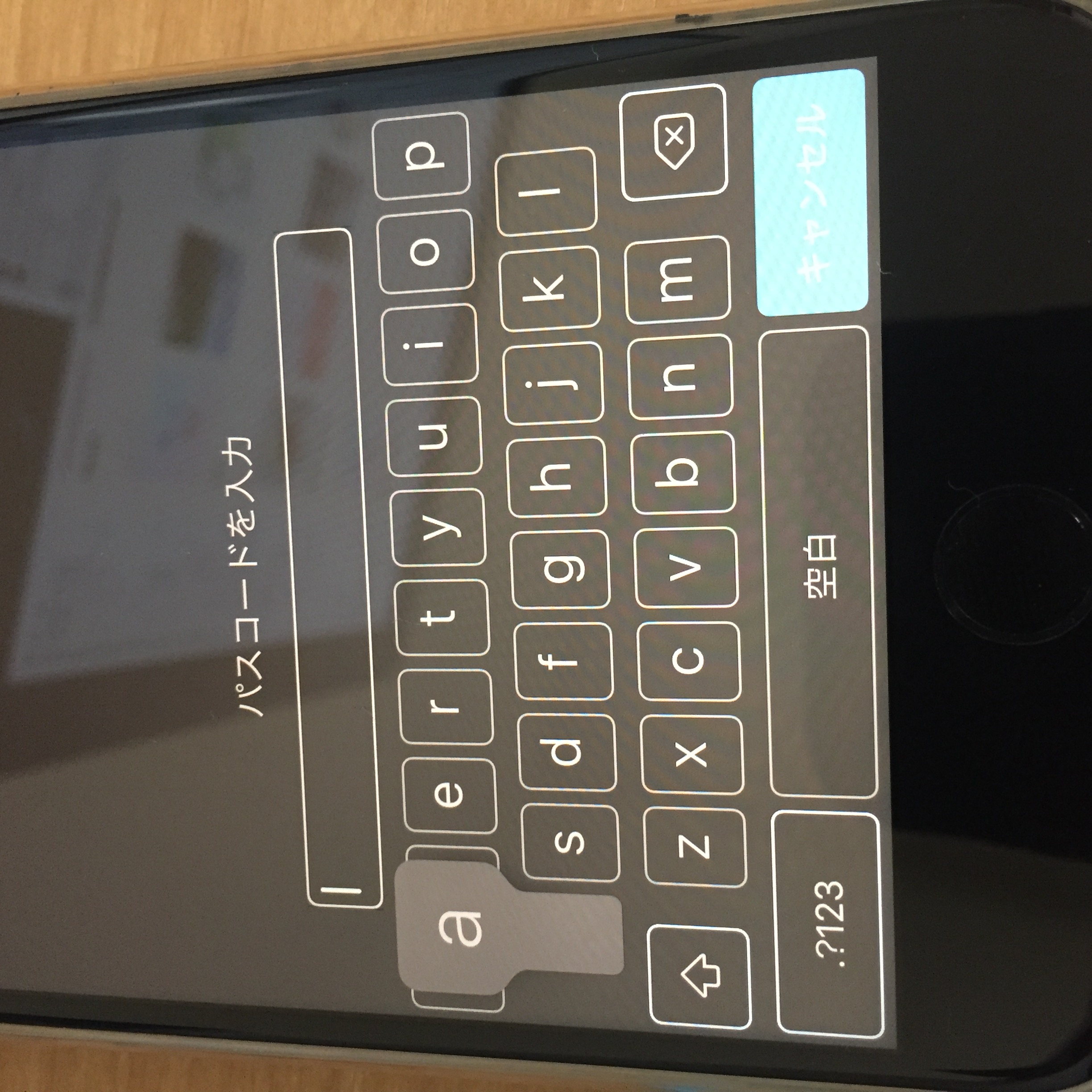 ホームボタンを押すとパスコード入力になりますが、当方パスコードを「aの上に○がついた文字」など特殊文字を設定していたため、aを長押しして特殊文字を出そうとすると、aの表示のまま画面が固まって、何もできなくなってしまいました。