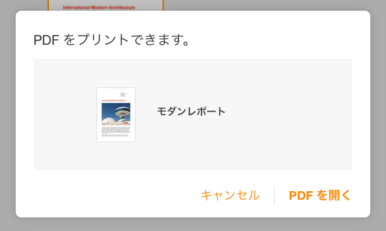 2. PDFの作成が完了したら、「PDF を開く」を選択。