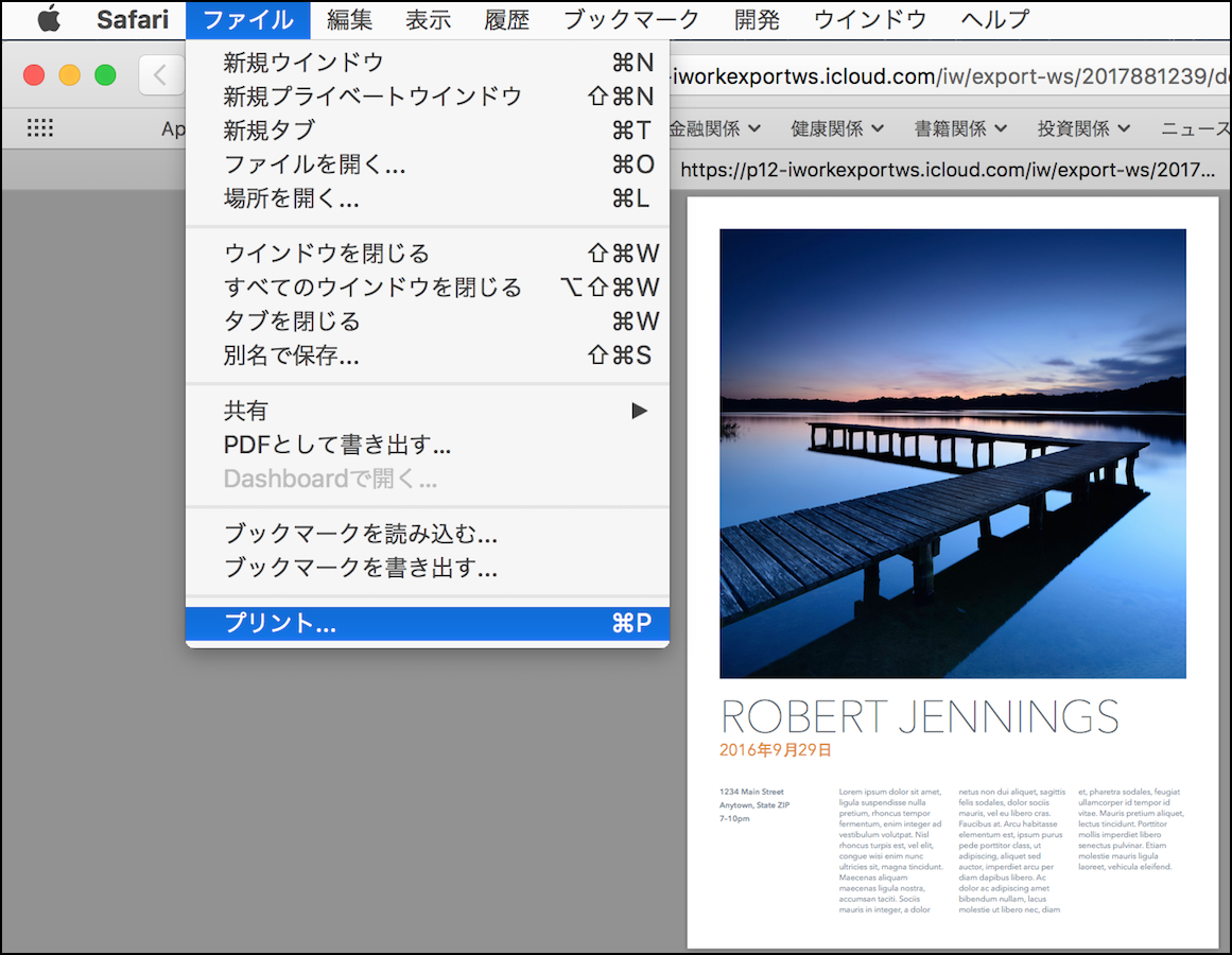iCloudのpagesで作成した文書を作成した通りに印刷したい