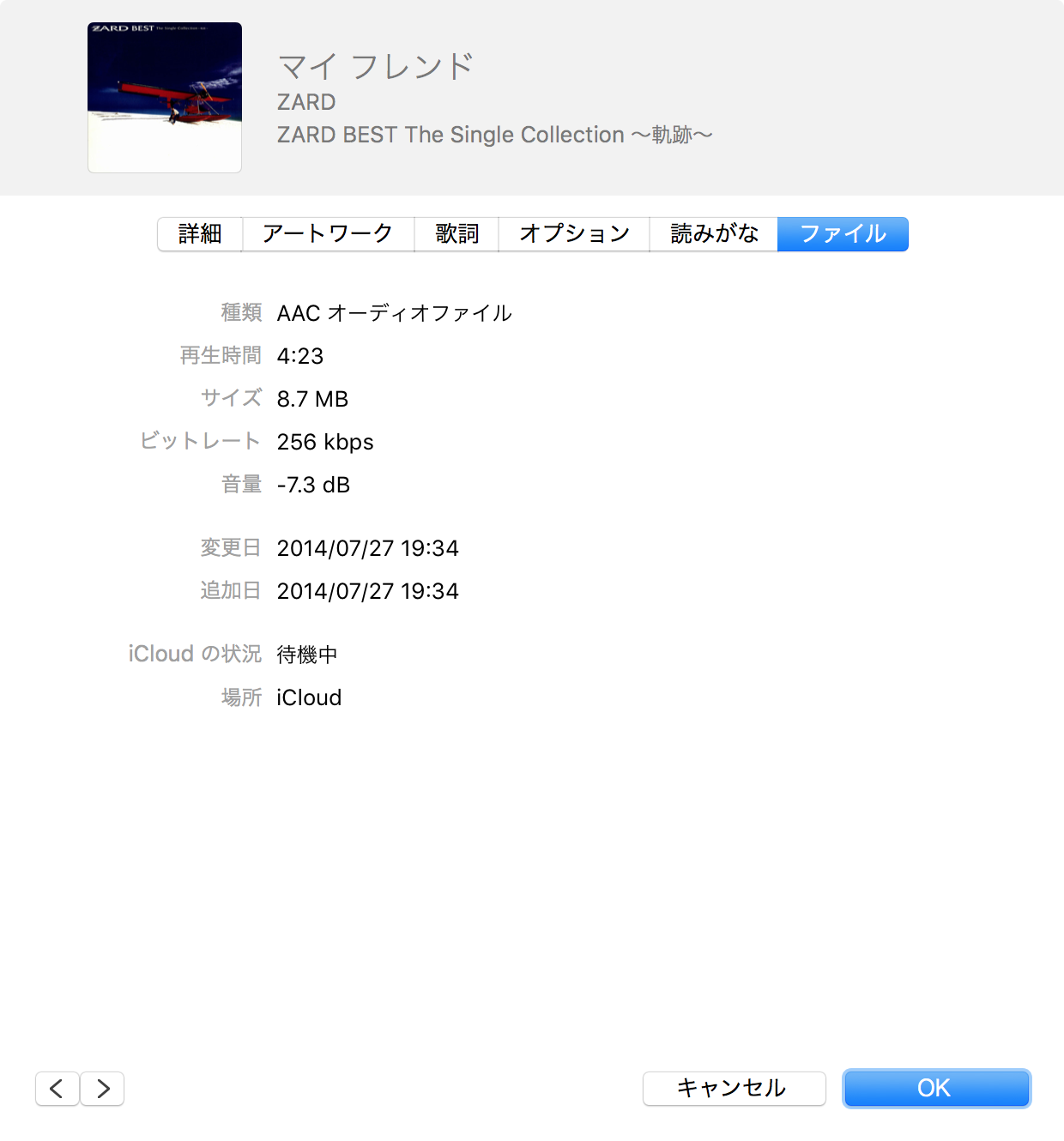 以前、iCloudミュージックライブラリ(iTunes Match)にアップロードした曲の、
