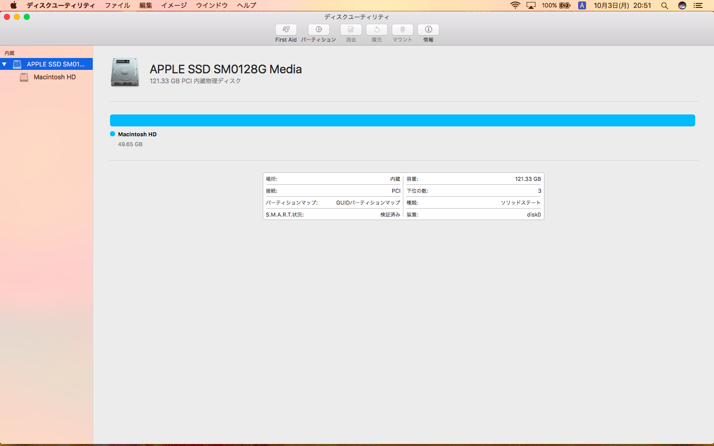 ディスクユーティリティのスクショを撮ったので見ていただければと思います。
