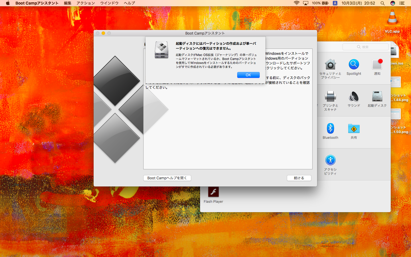 またBoot Campアシスタントにて、パーテーションを削除してみてはと思ったのですが、こちらもエラーが出てだめでした。スクショの通りです。