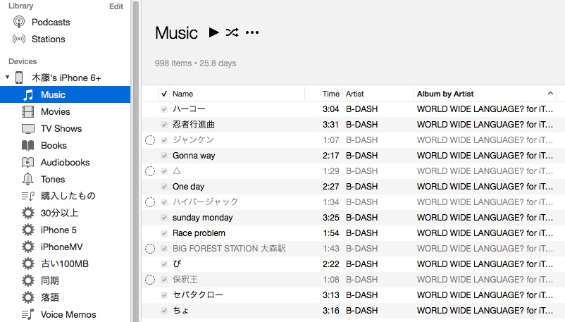iMacのiTunes Storeで曲を購入し、iPhone 6sに同期したところ、画像のようになりました。