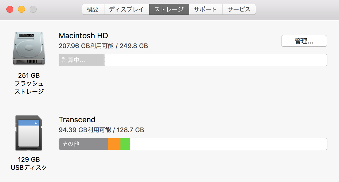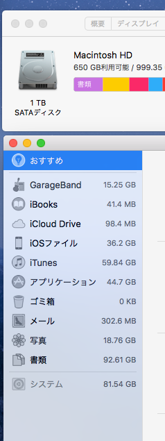特に Storage の 管理 のオプションを見た場合に システムがぐるぐる回っている場合は一度行ってみて下さい。