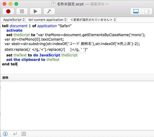 1)AppleScriptのSafari.app用のコマンドでJavaScriptを実行できます。 このコマンドを使った、一つの方法を考えてみました。 このスクリプトは、