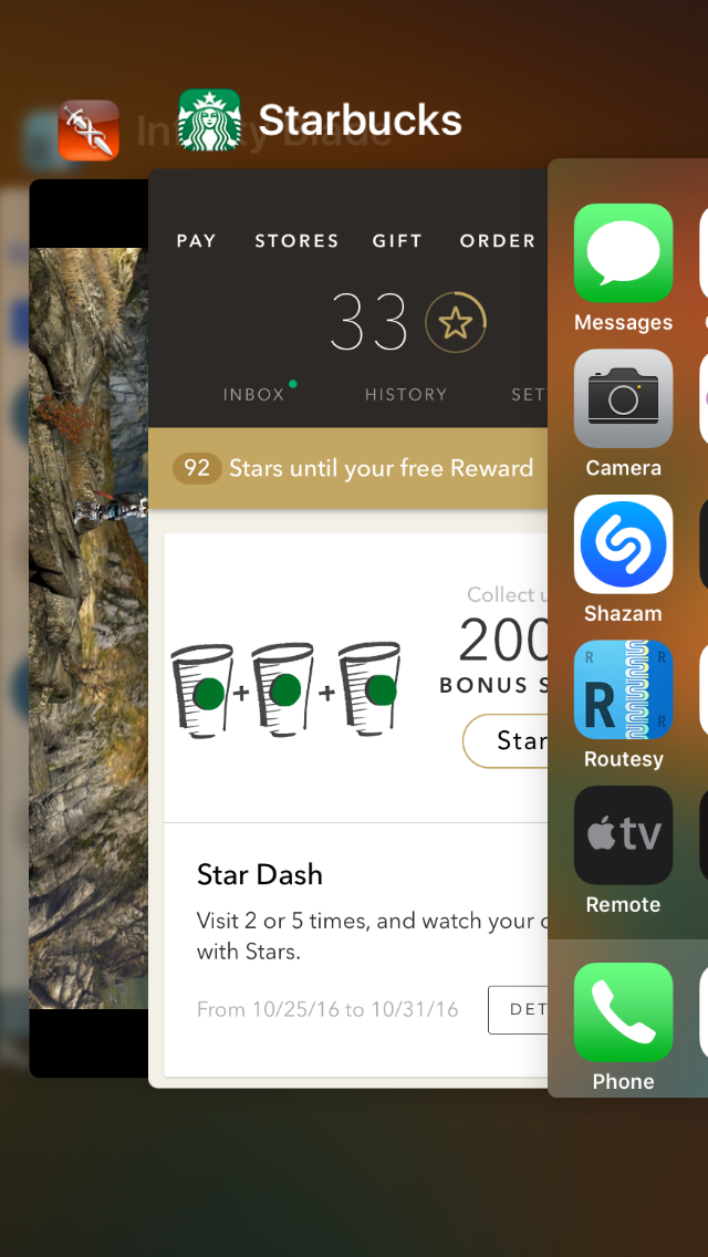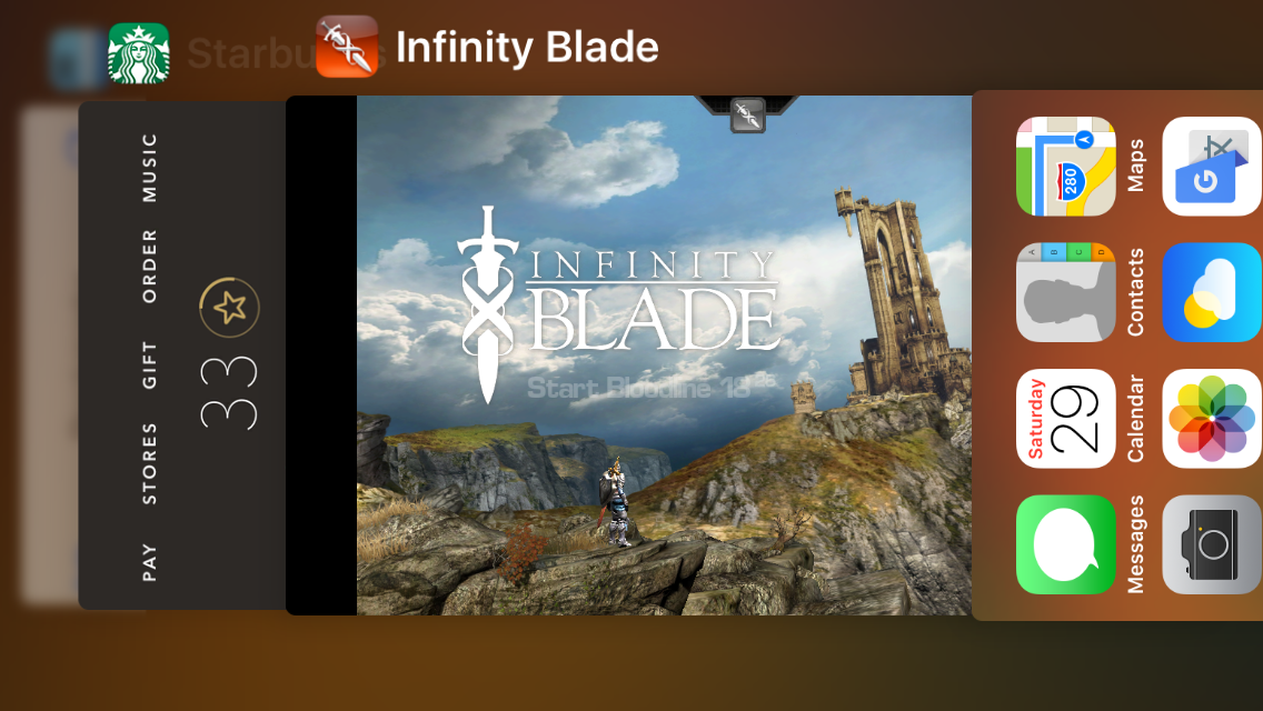 横向きで使うAppは、ホームボタンをダブルクリックすると、横向きでマルチタスクの画面になります。一度ホームボタンをクリックしてホーム画面に戻してからダブルクリックだと縦になります。縦でしか利用できないAppは横向きに持ってダブルクリックしても縦でのマルチタスクになります。