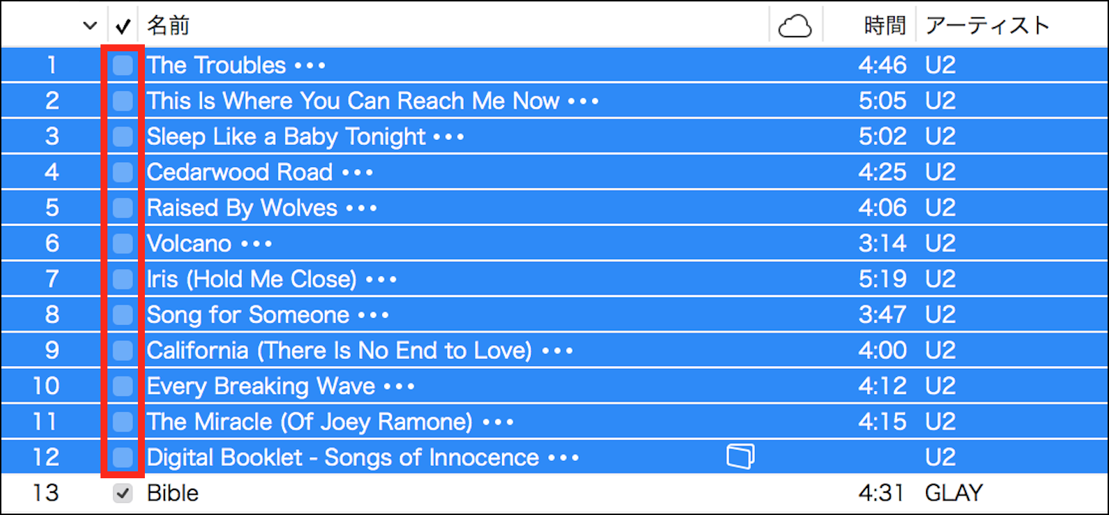 複数項目に対して同時にチェックを外す方法が分かりません。