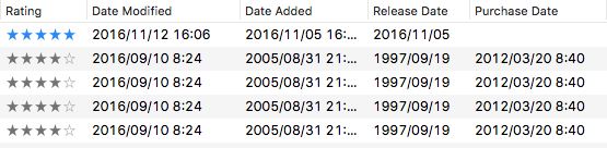 環境はMacBook Pro(Mid 2009)/OS X 10.11.6 (15G1108)/iTunes 12.5.3.17 にてiPhoneから登録した曲以外にレートが登録されている曲が散見され、そのレート表示が灰色の星。