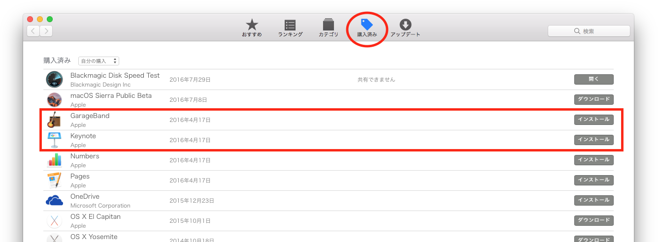 App Storeアプリの「購入済み」に表示されていることを確認してください。