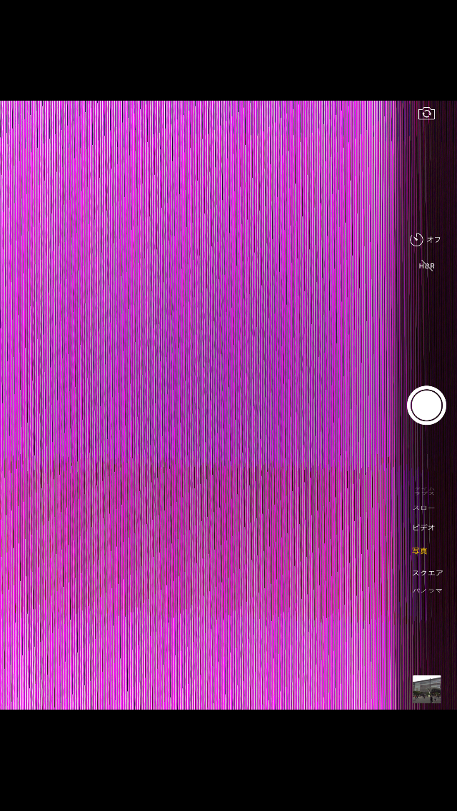 ipad mini4 のフロントカメラ起動中に、画面が添付画像のとおりピンク色になる事象が発生します。これまでApple Storeで交換対応してもらいましたが、私が扱った4台全てで同じ事象が発生しました。この事象が発生しないハードをお持ちの方、そのハードの購入時期(製造時期)や製造工場等を教えて下さい。
