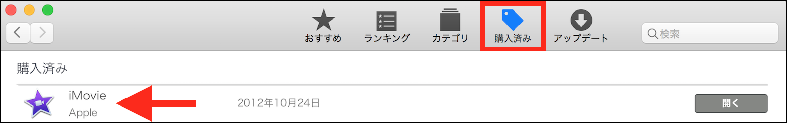 もう一度インストールをしようとapp storeでimovieを検索。すると、インストールではなくアップデートと表記されたボタンがありました。