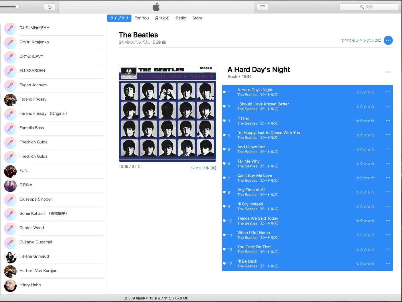 つまり、パソコン側のiTunesを使って、iCloudミュージックライブラリの音楽情報(アーティスト名など)を変更すれば、iOSデバイス側でも「カタカナ」でない「アルファベット」表記のアーティスト名になりますので、お試ししてみて下さい…ませ。