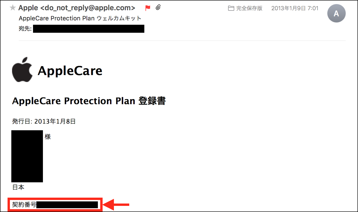 アップルケアのの登録画面で「契約登録番号」を入力したいのですが、何を参照すればいいのかわかりません。