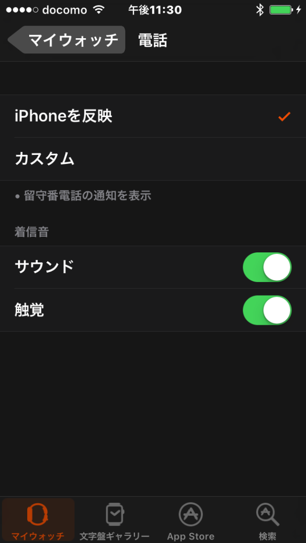 iPhoneのWatchアプリから、「マイウォッチ」→「電話」と進み、「着信音」の設定で、