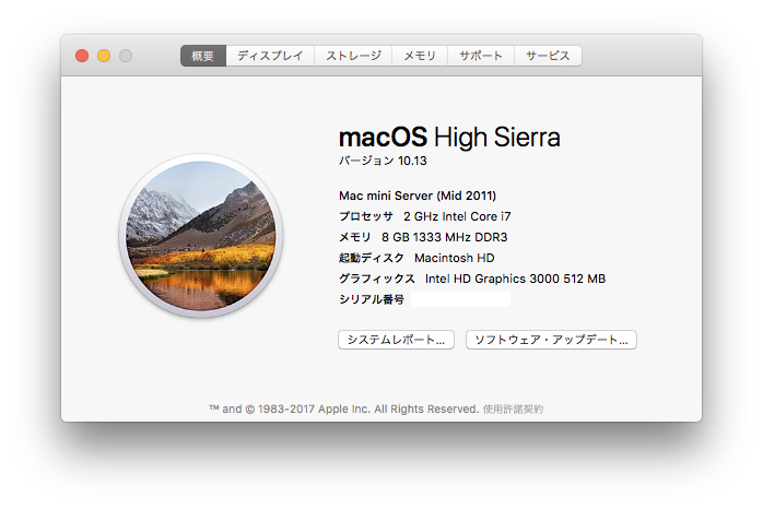 Mac mini (Mid 2011)2.3GHzのユーザーです。