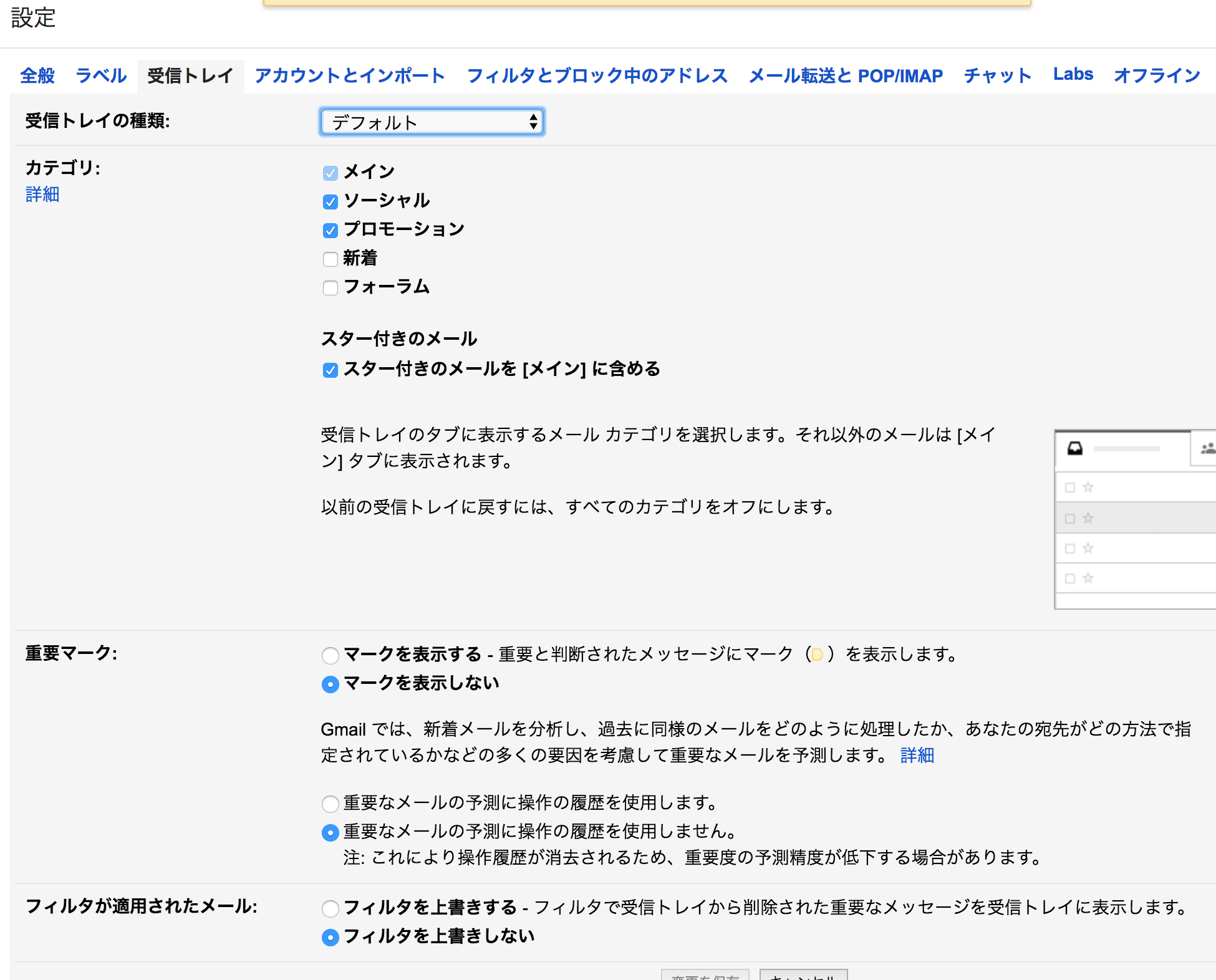 でも、「重要」にかんしてはラベルを表示するかどうかの設定であって、使用するかどうかの設定ではないですので要注意。