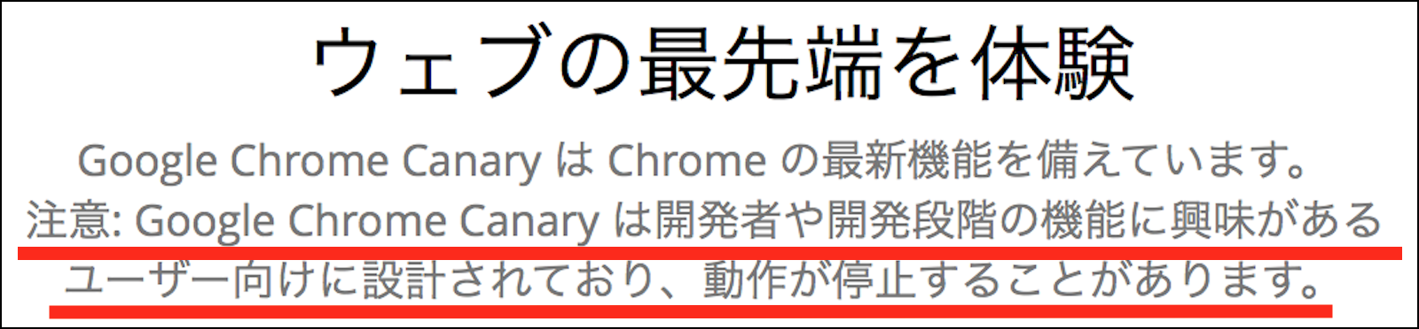 Google Chrome Canary は開発者向けに設計された物なので、不安定な動作や動作が停止する可能性も示唆されています。