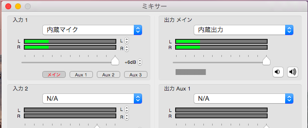 で、再度、ググると、「AudioMIDI設定を見ろ」というのがありました。