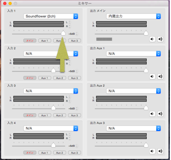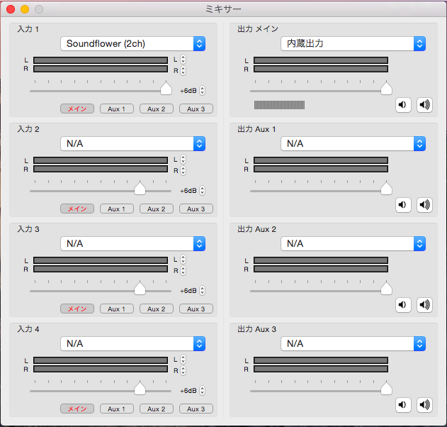 モニターの仕方を考えないと、耳が痛いくらいです。(Soundflowerは、音量絞っては、まずそうですし)