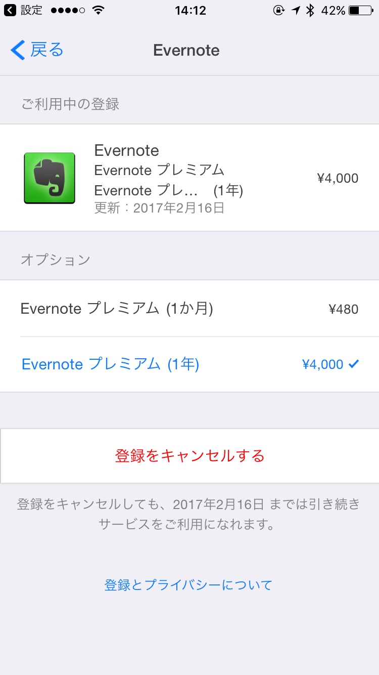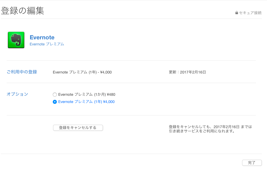 今年2月16日に Evernote プレミアムの年間契約が更新を迎えるのですが, Evernote のサイトにはプレミアムプランの更新価格が 5,200円と表示されているのに対し, iTunes Store 上では 4,000円と表示されています.4,000円で年間契約が更新できると思って間違いないのでしょうか?