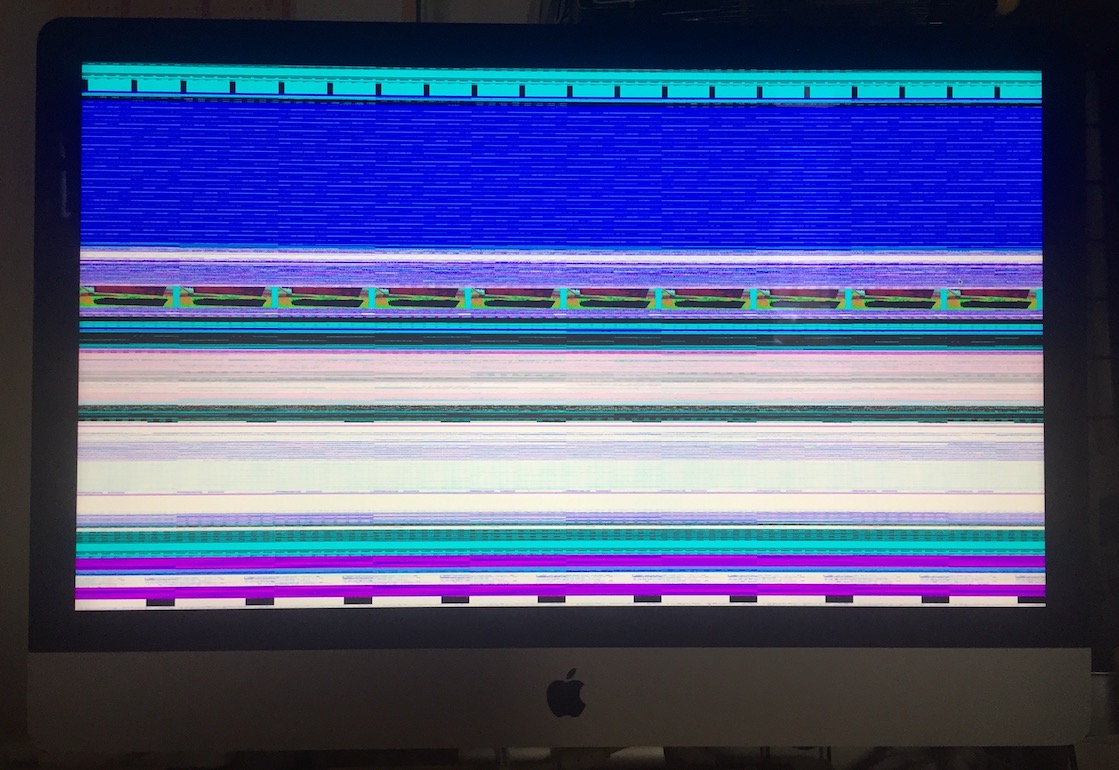 システム終了時、カウントダウン後に画面が黒くなる前に点や線でカラフルなノイズが映ります。