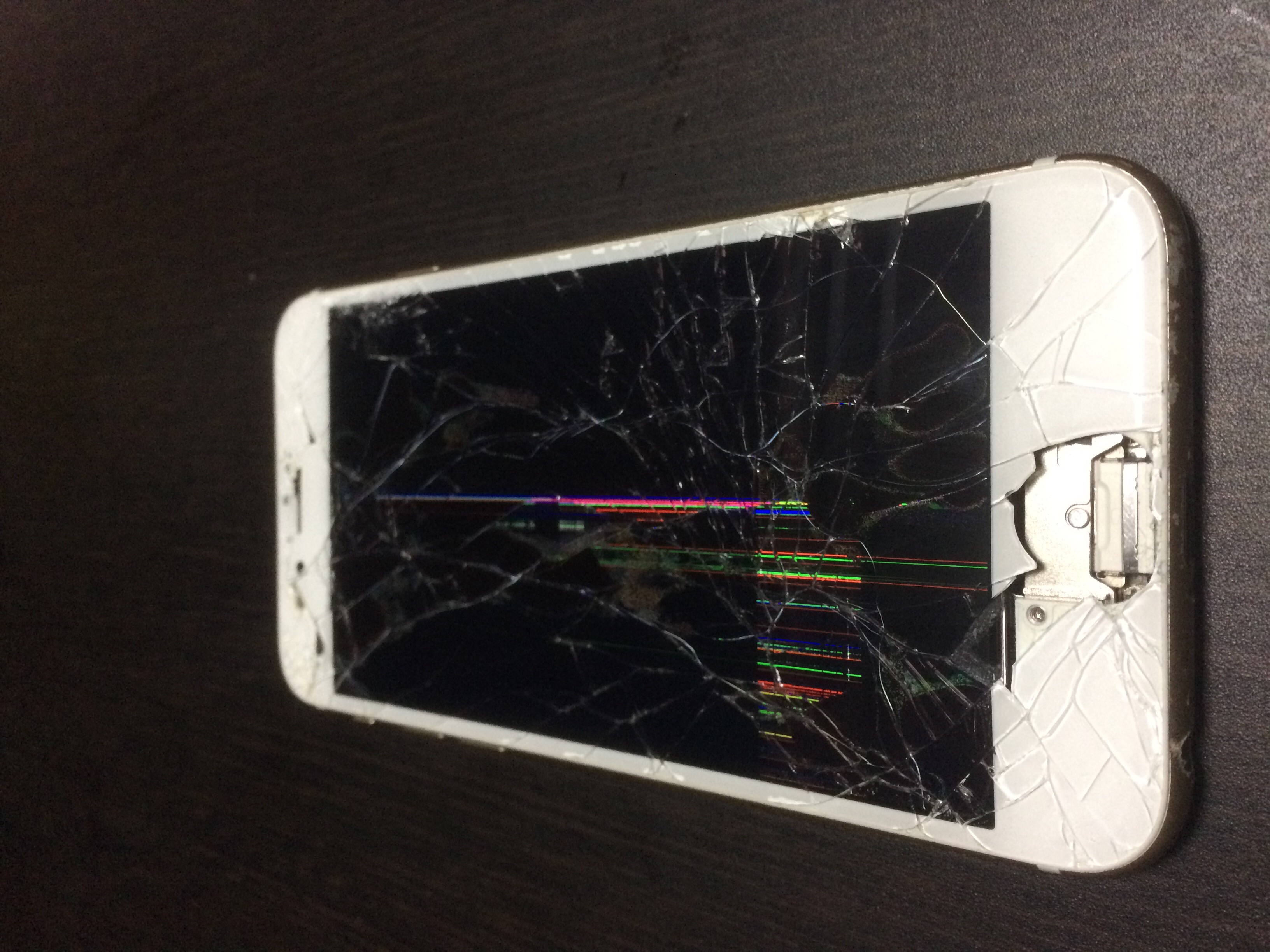 先日、iPhone 6sを落としてしまい、画面がバキバキ真っ暗、しかもホームボタンもない状態です。電源を入れると、真っ暗な画面中央に虹色の縦線が入ります。
