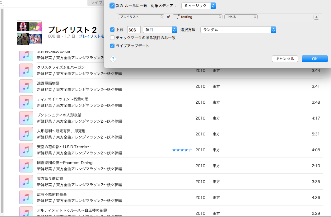 これで好ましい感じのシャッフルになるかチェックしてみてください 条件を変えても構わない これでダメな場合は、「そもそも何で普通にシャッフルできないか」というところに戻って、iTunesに楽曲を入れ直したり、新規ライブラリを作るなどした方がいいかも